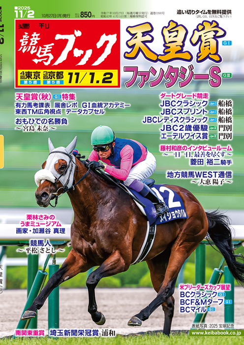 皐月賞馬は天皇賞(秋)へ、ダービー馬は凱旋門賞へとそれぞれの道を選んだ3歳クラシックの勝者。それらが不在の三冠最後の戦いは青葉賞勝ち馬エネルジコと神戸新聞杯勝ち馬エリキングが人気を分けた。序盤で後方に控え、2周目3角から徐々に動いたエネルジコは坂の下りで前に接近、直線早めに先頭に立つと後続を寄せつけない完勝で最後の冠を手にした。ルメール騎手は史上初の3連覇の快挙を達成、父のドゥラメンテには3度目で最後の菊花賞制覇となった。アルテミスSはフィロステファニが追い比べを制し、デビューから2戦2勝とした。今週は第172回天皇賞(秋)、ファンタジーS。